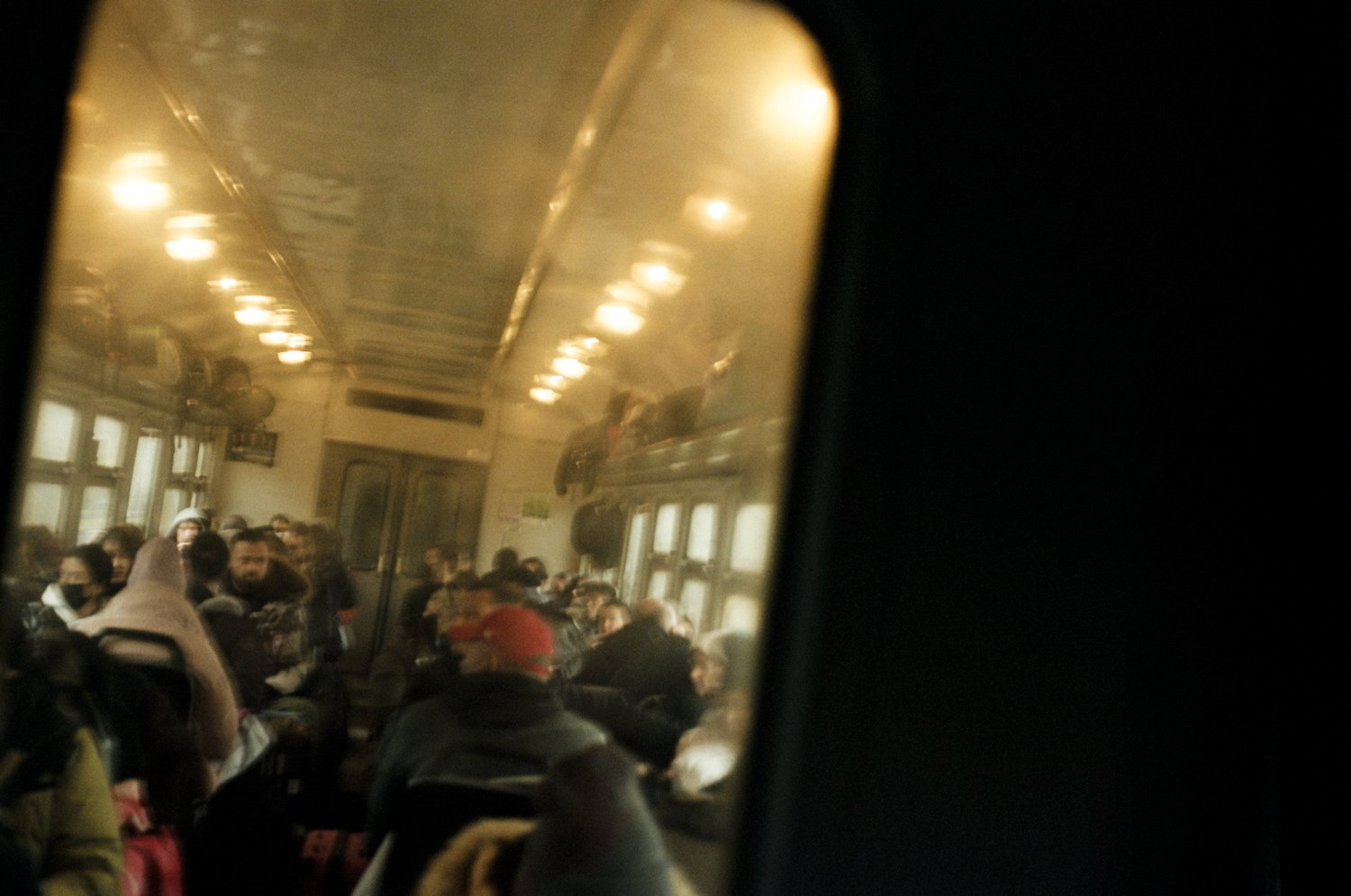 Ukraine, February 2022- A woman sleeps on the train on the way to Ukraine. Many crossed back into Ukraine, to help the war efforts, gather the rest of their belongings or their family members.